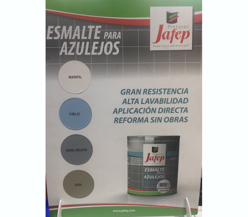 El esmalte para azulejos Jafep se puede aplicar directamente sobre azulejo sin que sea necesario  imprimarlo previamente. Gran dureza  excelente anclaje y una gran resistencia a los roces. Simula un acabado tipo cerámico con una gran retención del color y gran aplanamiento. Es lavable y  permanece inalterable en bastante tiempo.